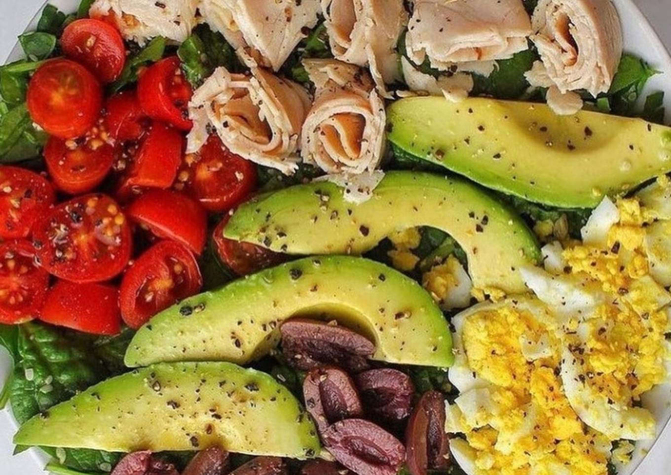 Ensalada de lechuga, jamón, huevo, aguacate y tomate