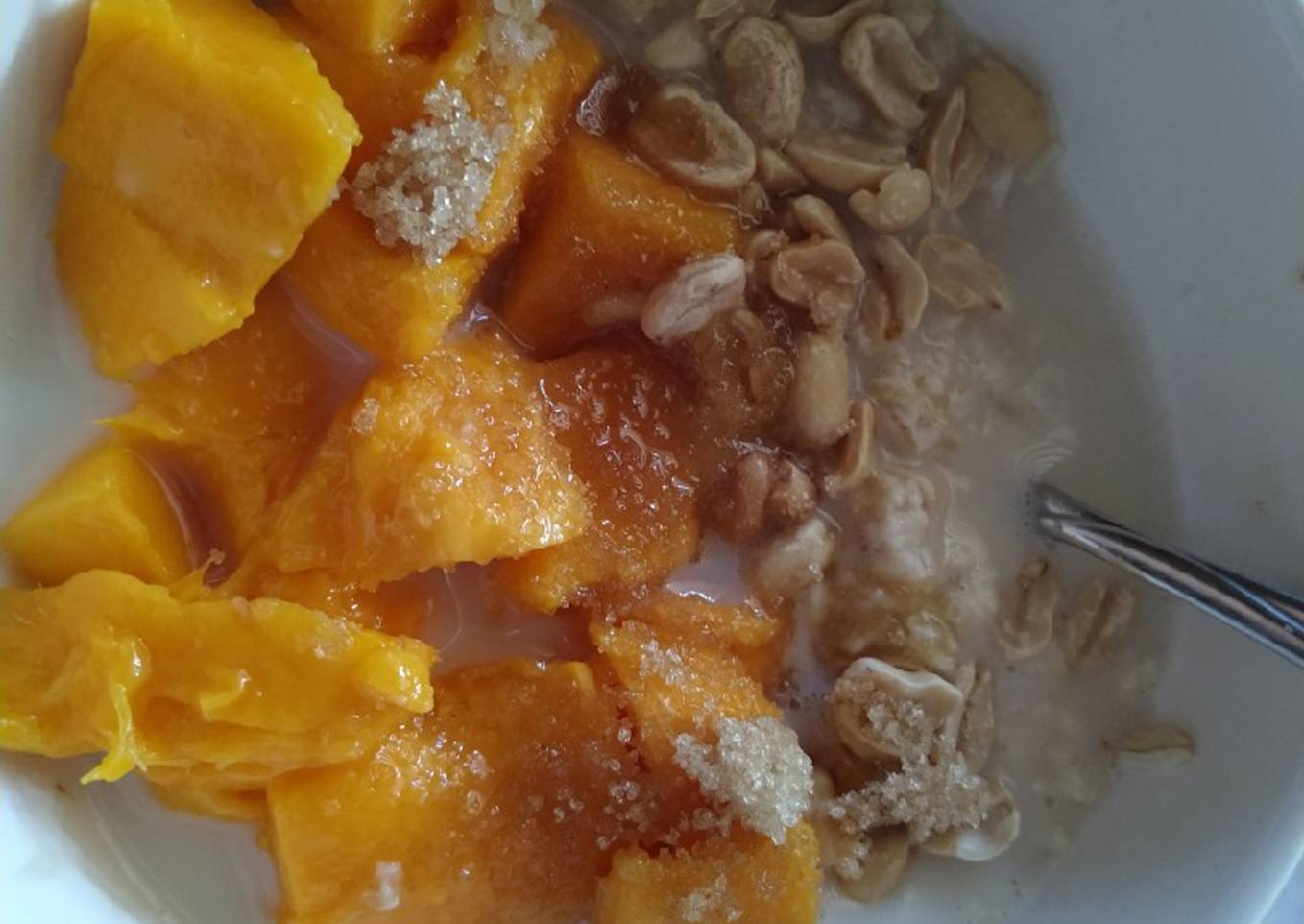 Avena con mango y cacahuates