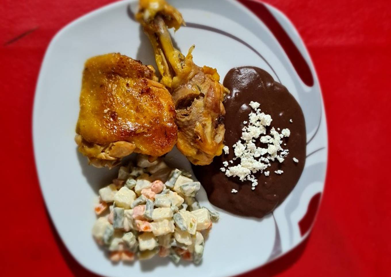 Pollo a la mantequilla acompañado con ensalada rusa